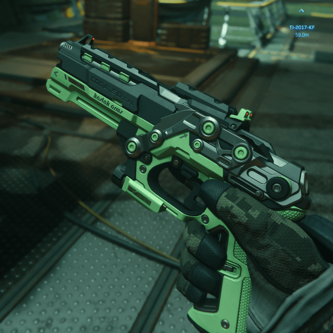 Often called the Kastak Arms "hand cannon," the Coda can end an engagement with a single .50 caliber round, although the substantial power can make the Coda's recoil hard to handle. Considering its limited magazine size and substantial kick, sustained fire is discouraged in favor of more accurate single shots. A sleek black and shocking green color palette give the "Big Boss" edition its signature look.