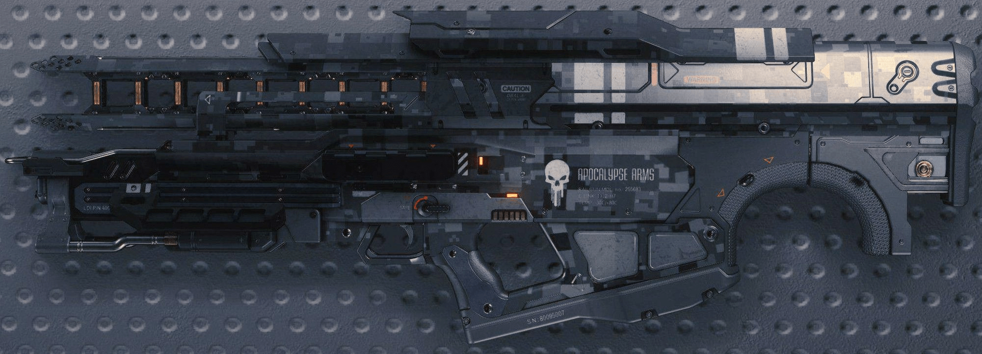 Gleich verheerend für größere Bedrohungen und feindliche Vehikel verwendet diese schultermontierte Railgun von Apocalypse Arms Elektromagnete, um ihre Fracht präzise über große Entfernungen zu liefern und sie zur Geißel von Land, Luft und Raum zu machen.